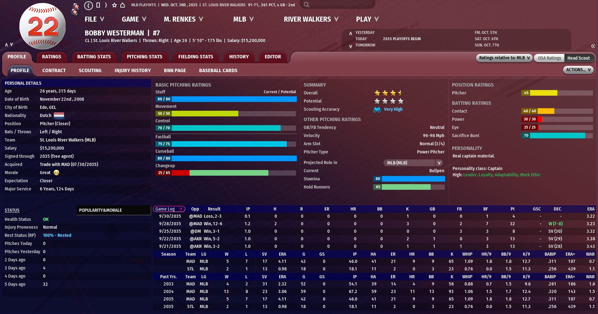 Walkers news: Oct. 3 -- Final team statistics for 2035