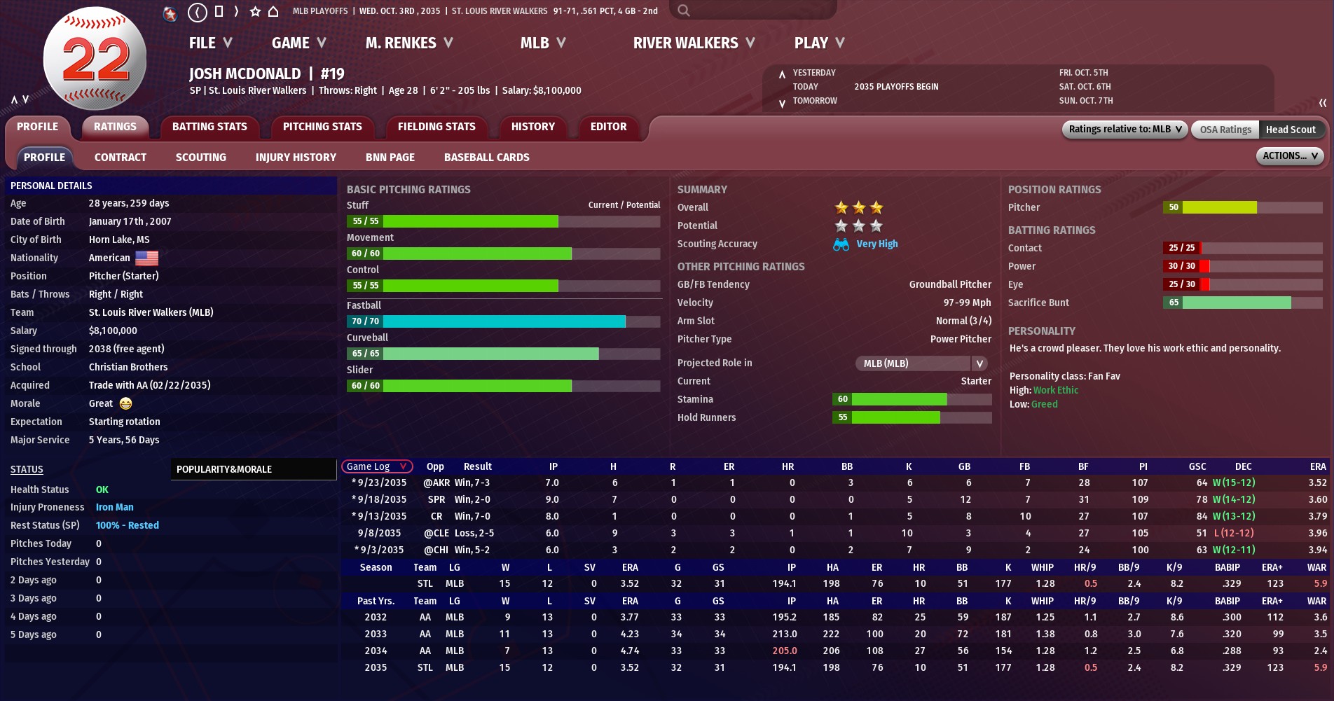 Walkers news: Oct. 3 -- Final team statistics for 2035