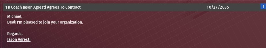 -- World Series MVP - Detroit second baseman Cade Doughty was 7 for 19 (.368 BA) in the series with two homers and four RBIs. -- Postseason MVP -- Detroit left fielder Harry Christiensen was 10 for 32 (.312 BA) with one homer, six RBIs and seven runs scored. -- The championship is the third in the Diesels history, they also won the title in 2024 and 2026. Last edited by rink23; 10-06-2021 at 03:36 AM. |