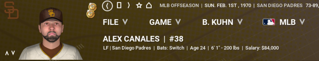 ---------------------------- April 4: The Giants purchased C Chris Campbell from the Red Sox for $15,000. The Giants desperately needed a catcher and in Chris Campbell they get a guy with a good rep as a defensive player who hit .260 last season as a backup. Boston had acquired Sid Bartoszek in the offseason and only one of those two guys was going to make the Opening Day roster anyway. April 4: The Phillies traded SS Eric Biron and minor league RF Richard Berman to the Brewers for 3B Bobby Ramirez and CF Alex Sanchez. The Brewers take on two players who could very easily start for them in 1970 and in exchange the Indians raided their shallow farm system. Ramirez was named the #20 prospect in baseball according to OSA but is still probably at least a year away from the major leagues. Sanchez is nowhere near as bright a prospect although he did win a minor league Gold Glove in 1968. April 5: The Brewers purchased RF Eric Greeno from the Reds for $5,000. Milwaukee continues to supplement their roster with guys who didn't quite make the roster of other clubs. The 27 year old Greeno had a cup of coffee with the Reds last season and should be a decent pinch-hitting / 5th outfield option for them in 1970. Preseason Predictions! ------------------------------------ I almost don't want to look at these because they might be too much information but what the heck, I'll forget about these in 2 weeks worth of game time and I think they're pretty interesting... AL East: The Red Sox will win 100, with defending champs Cleveland falling all the way back to 4th in the division. Surprisingly the Baltimore Orioles are predicted to finish 2nd and make a 25-win turnaround to 89 victories in 1970. Good luck with that! The Senators are predicted to hit the cellar in the East with a 67-95 record. AL West: The Twins should hold off the White Sox for a repeat playoff berth. They're predicted to win 92 with Chicago finishing 2nd and being the only other team in the AL West with a winning record with an 85-77 record. The Royals will bring up the rear with a 67-95 mark. I'm very surprised at how good the game thinks the A's and Brewers will be: both clock in with 75 expected victories. AL MVP and Cy Young races: They've got Indians 1B Ernesto Garcia hitting 62 HRs, which would be an AL record and which would be kind of awesome. I'm super surprised at how good the game thinks Rick Berman will be for Milwaukee. As you can see above they just traded for this guy, who spent all of 1969 playing for their AAA affiliate after spending time in '68 as a pinch-hitter for them. They say he'll hit .338 with 74 RBIs. OK. Mike Pesco, Mike Sanchez, and Angelo Ramos are all predicted to win 20, which, if the Red Sox win 100 games this year, I can definitely see that for the first two guys. Pesco's also predicted to put up 271 Ks in 262.2 innings. NL East: The game actually has the Cubs beating out the Mets this year with a 98-64 record; in fact, they have the Mets falling all the way down to 3rd in the division and the AI thinks they'll have to hold off a furious run by a 96 win Philadelphia Phillies team. Not gonna lie, that would be fun to watch. The Cards figure to drop to 64-98, which surprises me given that the game doesn't factor injuries into its predictions, and the Expos as expected are as bad as ever and will lose 110. NL West: The Reds will kick-start the Big Red Machine this year... what??? That would surely come from out of nowhere. The game has the Braves falling all the way to 76-86, which, given the state of their pitching staff, could be in play I guess. The Dodgers will fall all the way down to 62-99 with that depleted roster of theirs. NL MVP/Cy races: Henry Riggs, if healthy, will hit 58 dingers. That would be awesome although if he does that for a mid-70s win team it would be bittersweet. Justin Weaver's also projected to break the 50 HR mark with Justin Stone of STL and reigning MVP Antonio Lopez dropping more than 40. For Cy stuff, Houston's Tony Rivera is predicted to go 22-8 but in 42 starts, which seems unlikely. He definitely has the makeup to win 20 though. Philadelphia's Roger Quintana projects to a 20-10 record, which could happen if he stays healthy. Santos Arango will lead the league in ERA with a 2.23 mark and speaking of Pirates pitchers, OOTP predicts big thing for reliever Paz Lemus: an 11-5 record, 23 saves, and a 1.97 ERA in an environment where in real life ERAs throughout the league creep closer and closer to 4 (3.88 in actual 1970).