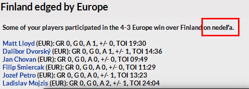 Here for example "Nedeľa", not Sunday. |