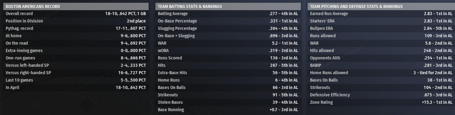 The details behind the 18-10 month that the Boston Americans put up in April.