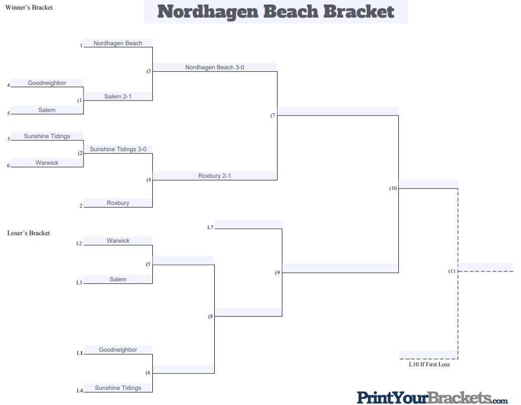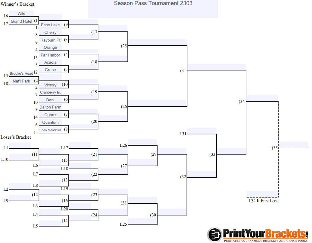 BNN Weekly Report This Week in the CBO, BMU, and GBRL by Nat Wright-Kawolski 5 March 2303 2303 Nuka Cup Rounds 3 and 4 Round 4 of the 2303 Nuka Cup is complete with 12 teams now remaining. Here are some of the outstanding games of the week with the brackets attached at the end. Top Individual Performance University Point was not happy to lose its first series in the tournament, and it shows. Since that series loss to Concord, the Deathclaws woke up. That was most evident when the Claws put away Finch Farm in the elimination bracket. Tomas Jones was instrumental in Game 3 when he tore up the Four Leafs pitching. Jones was 4 for 4 with two home runs, including a grand slam, with a walk, three runs scored, and seven RBI. Heavy Hitter Diamond City's Oren Gep could not prevent his team from being eliminated, but he sure tired. The Swatters first bagger hit a home run in DC's 8-1 victory and then two home runs in a 9-5 loss to Easy Town in the series clincher Pitcher Extraordinaire Roxbury may have been knocked down by Nordhagen Beach, but the Rad Sox's Eugene Gym made sure it was not a sweep. Gym pitched eight shutout innings, allowing just three hits, walking two, and striking out five in a 2-0 victory over the Boys. All three hits were singles. Wildest Game Maybe they just don't have pitching, but the 13-11 shootout with Quincy topping The Slog was a hitter's dream and a pitching coach's nightmare. Gunners' 35-year-old 1B Geoff Fair had one heck of a game he never had in his regular-season career. Fair, who has one career home run, went 3 for 5 with a home run, a run, and six RBI. CF John Rose was 4 for 5 with a home run, a walk, three runs, and an RBI. There were a total of 18 walks in the game against 12 strikeouts. Season Pass Report The Season Pass Tournament is 20 games in with 12 of the 18 teams remaining and just four undefeated teams: #1 Echo Lake, #3 Dalton Farm, #7 Cranberry Island, and #12 Grape.