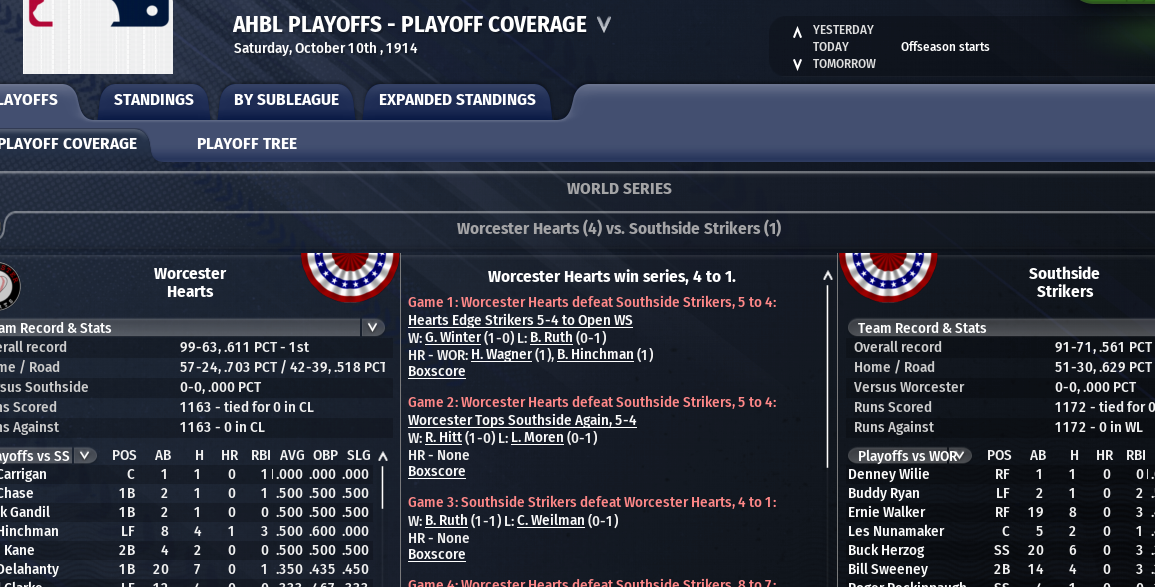 So something went very wrong with my historical league tonight. I had just finished the 1914 season World Series and when I went to Continue, a number of things loaded, player database or something.