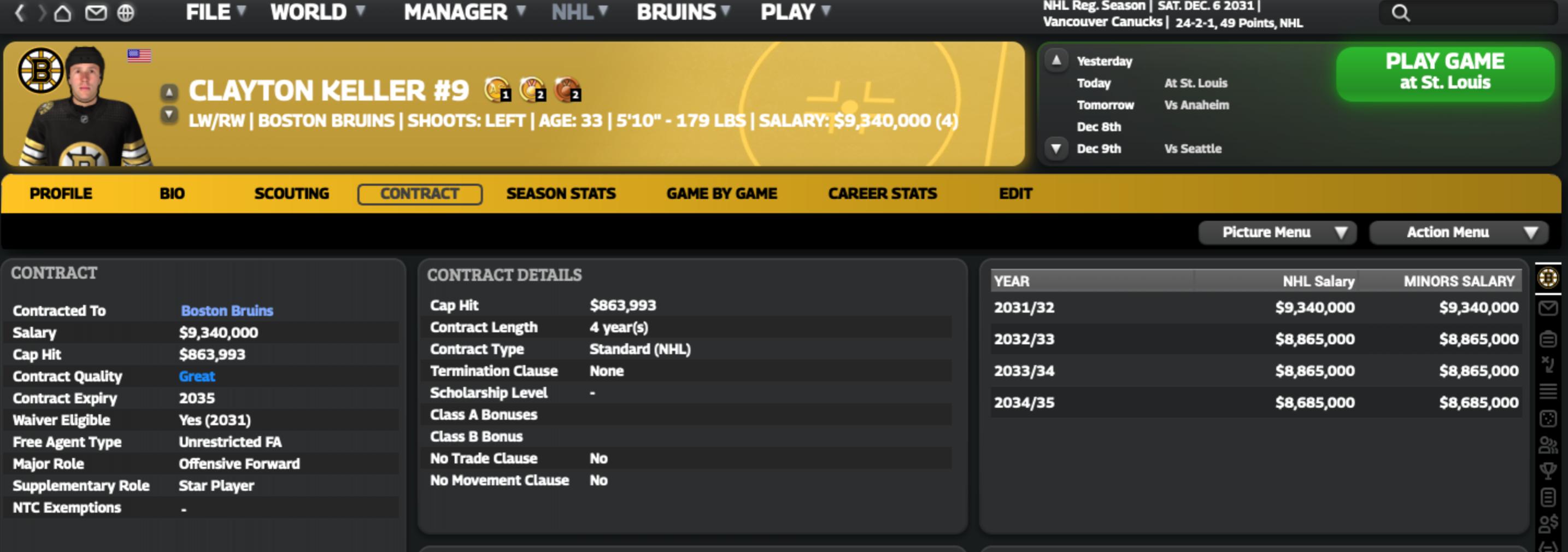 I just noticed that when I traded for a player and got the other team to retain some of his cap, when I go to renew his deal, he forgets the total value of his original deal and bases his request for a new deal on the cap number that he has with me.... I traded for Alex DeBrincat and got Detroit to keep 20% of his 7.875mil/year caphit and when I went to renew his deal he was asking for a slight increase of the 6.3mil/year cap hit that he had with me, while in his prime.... I'm not sure if this is a bug, but it feels like it.... |