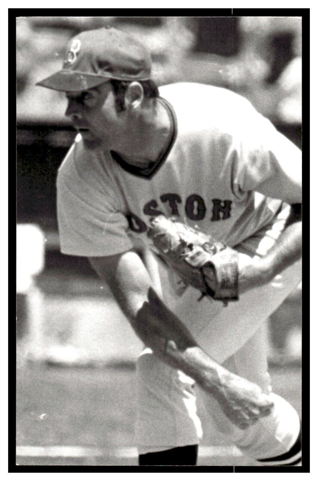 Looking closely, the hat he's wearing may be the red-and-blue hat used in 1975-76, but I can't tell for sure. Maybe someone better versed in B&W photos of 1970s Red Sox uniforms can give a definitive answer.
