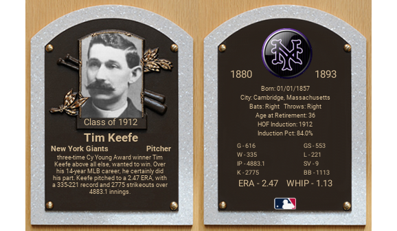 I wanted to have veteran committee vote for players that retired 25 years before the current election. I was going to try and follow the mlb vet selection numbers. Then i thought i would just elect 2 vets each year. I thought i would run the hof selection each year in a backup copy to get the players. Then i would add their hall of fame metrics and just average them to get the 2 players that would join the hall of fame players voted in for the current year. But i realized i would have to put in the nominated players who had yet to make the hall for each new year. seemed like it would be too much work. So i decided to start the hall in 1912 to give 19th century players a better chance. I set the wait for 10 and service years to 5. I will switch those in the 1935 vote. The reason im doing it this way is to give players like Ross Barnes a shot at the hall. Barnes only played 8 years and only had 841 hits. But he batted .332, won 4 mvps, 2 gold gloves, 6 silver slugger awards and played on 5 championship teams. For his time he was one of the best players I doubt if he will get in. Anyway here is the 1912 Hall of Fame selection. The ballots are counted and the results are in. This year we will witness six players added to the Hall of Fame. Billy Hamilton, John Clarkson, Tony Mullane, Tim Keefe, Mickey Welch, and Old Hoss Radbourn received the ultimate honor this year in being voted as the newest members of the Hall of Fame. CF Billy Hamilton 93.5 (1st year) Inducted HOF SP John Clarkson 92.5 (1st year) Inducted HOF SP Tony Mullane 85.0 (1st year) Inducted HOF SP Tim Keefe 84.0 (1st year) Inducted HOF SP Mickey Welch 81.9 (1st year) Inducted HOF SP Old Hoss Radbourn 76.5 (1st year) Inducted HOF Not Elected SP Amos Rusie 73.7 (1st year) SP Jim Whitney 47.8 (1st year) 1B Roger Connor 45.7 (1st year) SP Jack Stivetts 36.9 (1st year) C Buck Ewing 30.4 (1st year) SP Monte Ward 30.0 (1st year) LF Tip O'Neill 22.5 (1st year) CF George Gore 21.8 (1st year) SP Jim McCormick 20.8 (1st year) SP Charlie Buffinton 20.5 (1st year) SP Bob Caruthers 18.8 (1st year) RF Mike Tiernan 18.1 (1st year) 2B Bid McPhee 15.0 (1st year) C King Kelly 15.0 (1st year) SP Larry Corcoran 13.7 (1st year) C Jack Clements 9.9 (1st year) SP Toad Ramsey 8.2 (1st year) SP Pud Galvin 7.2 (1st year) SP Will White 5.1 (1st year) SP Guy Hecker 4.8 (1st year) SP Gus Weyhing 4.4 (1st year) SP Tommy Bond 3.1 (1st year) SP Ed Morris 2.4 (1st year) 2B Cupid Childs 2.0 (1st year) SP Adonis Terry 1.7 (1st year) SP Dave Foutz 1.7 (1st year) SP Sadie McMahon 1.4 (1st year) SP Al Spalding 1.4 (1st year) 3B Deacon White 0.7 (1st year) SP Bobby Mathews 0.7 (1st year) SP Silver King 0.3 (1st year) LF Jim O'Rourke 0.3 (1st year) CF Paul Hines 0.3 (1st year) SP George Zettlein 0.3 (1st year) No other players received a vote. |