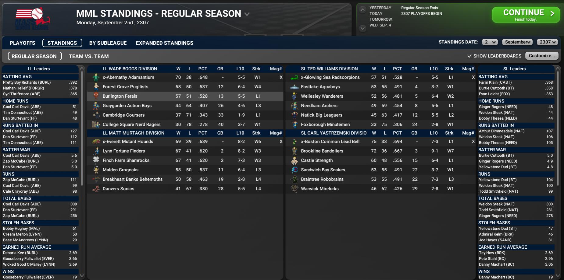 Teams are starting to run out of time. Unless there is a severe streak in some direction, the standings are looking to be set, which would be great news for Easy Town since they have been on the brink of winning the BL for multiple years.