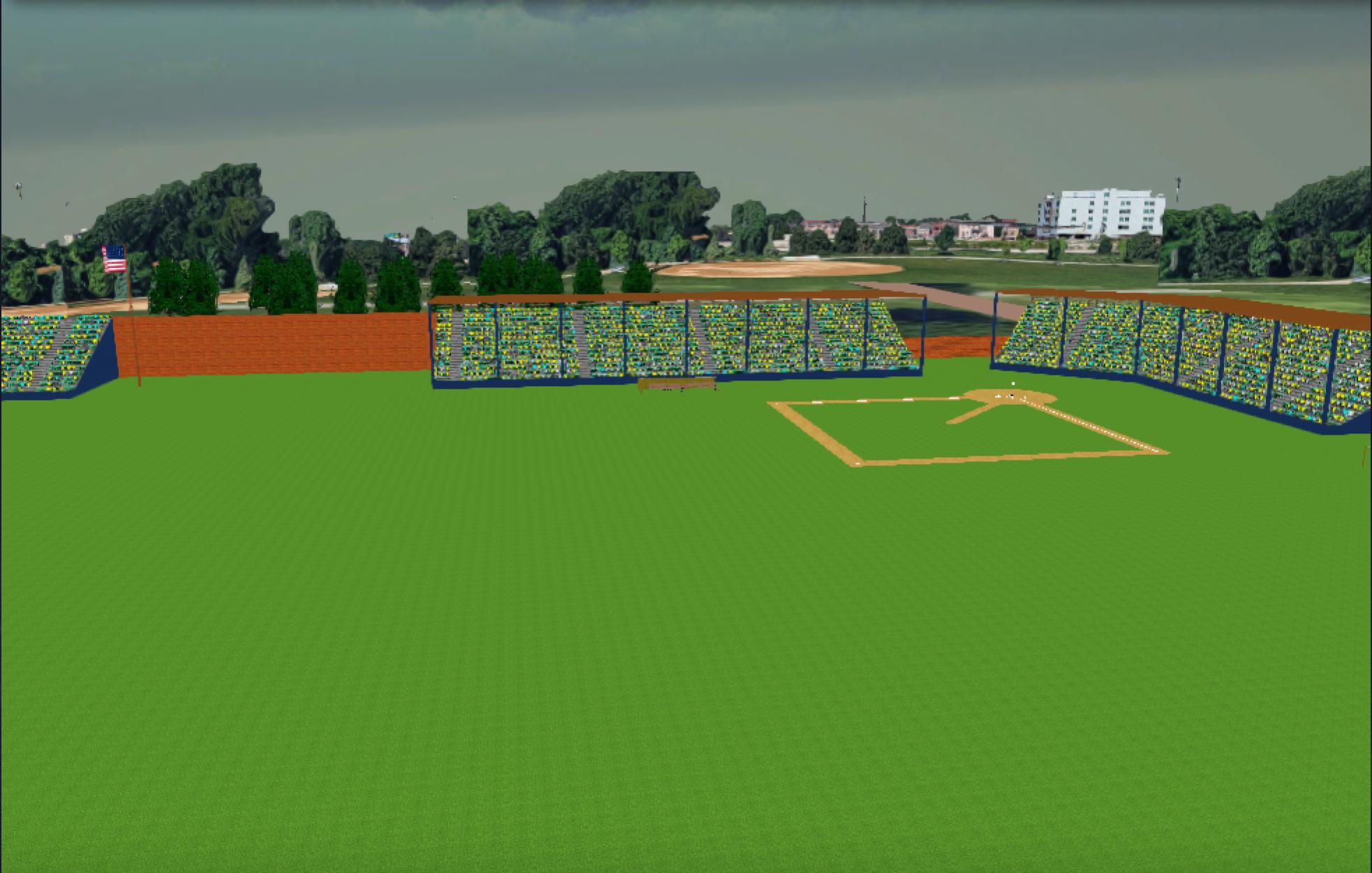 Google Drive Link for Avenue Grounds We have come rather a way compared to parks early in the thread in terms of information available. I haven't found any atlases or maps that show the structures for the park, but there does seem to be one sketch that I'm assuming is contemporary and that guided my modeling. I didn't find any dimensions, but did find an article that claimed the right field line was short and center field and left field were big, so I tried to reflect that. The background is from the right part of Cincinnati, but retains a bit more of the modern aspects than I'd prefer. Still, since according to the Wikipedia article they're not even quite 100% sure where the ballpark is I'll take this as being as close as I can get it... Enjoy! |