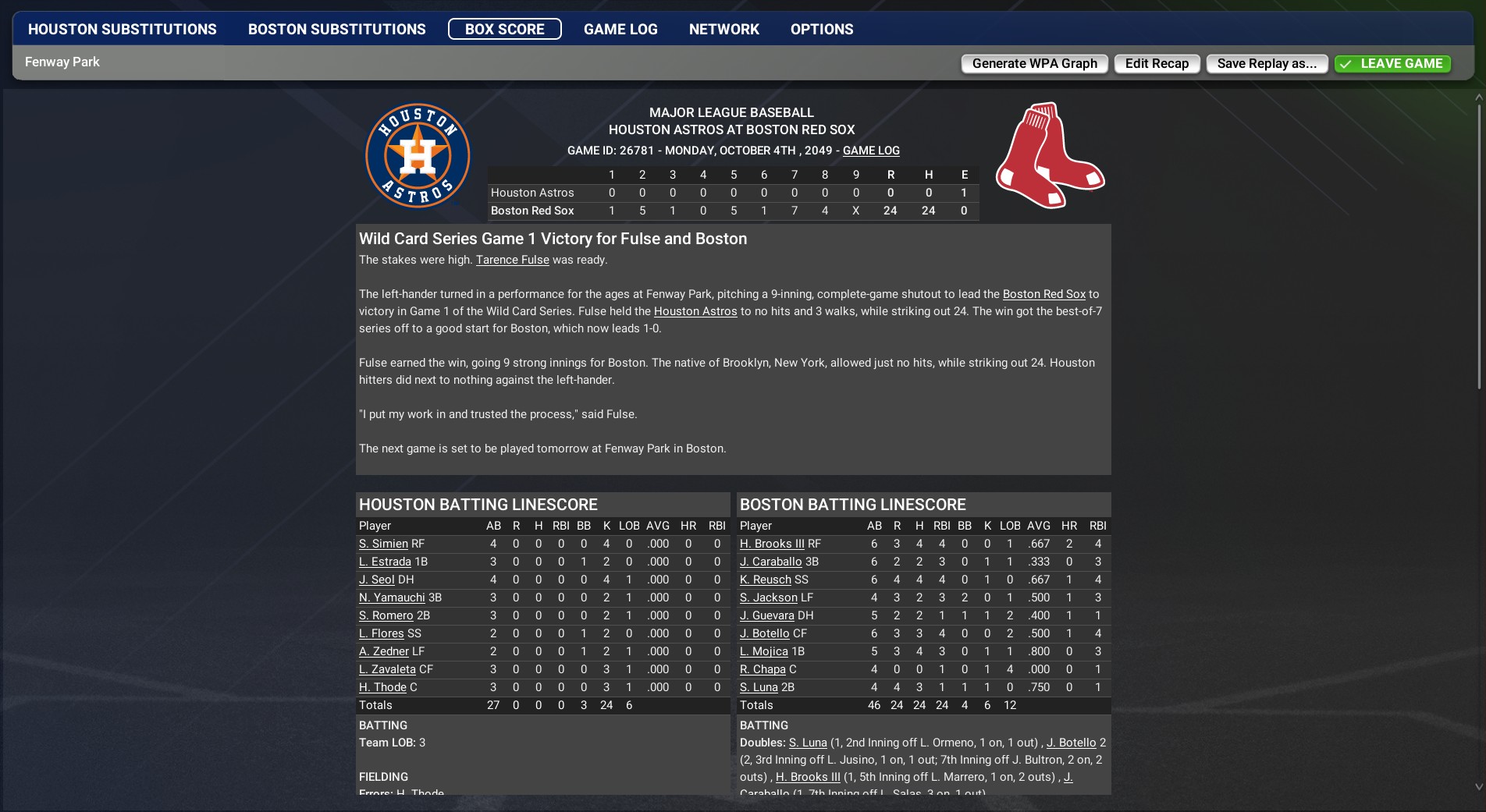 What were the pitching lines? Was it one Boston pitcher getting 24 strikeouts?