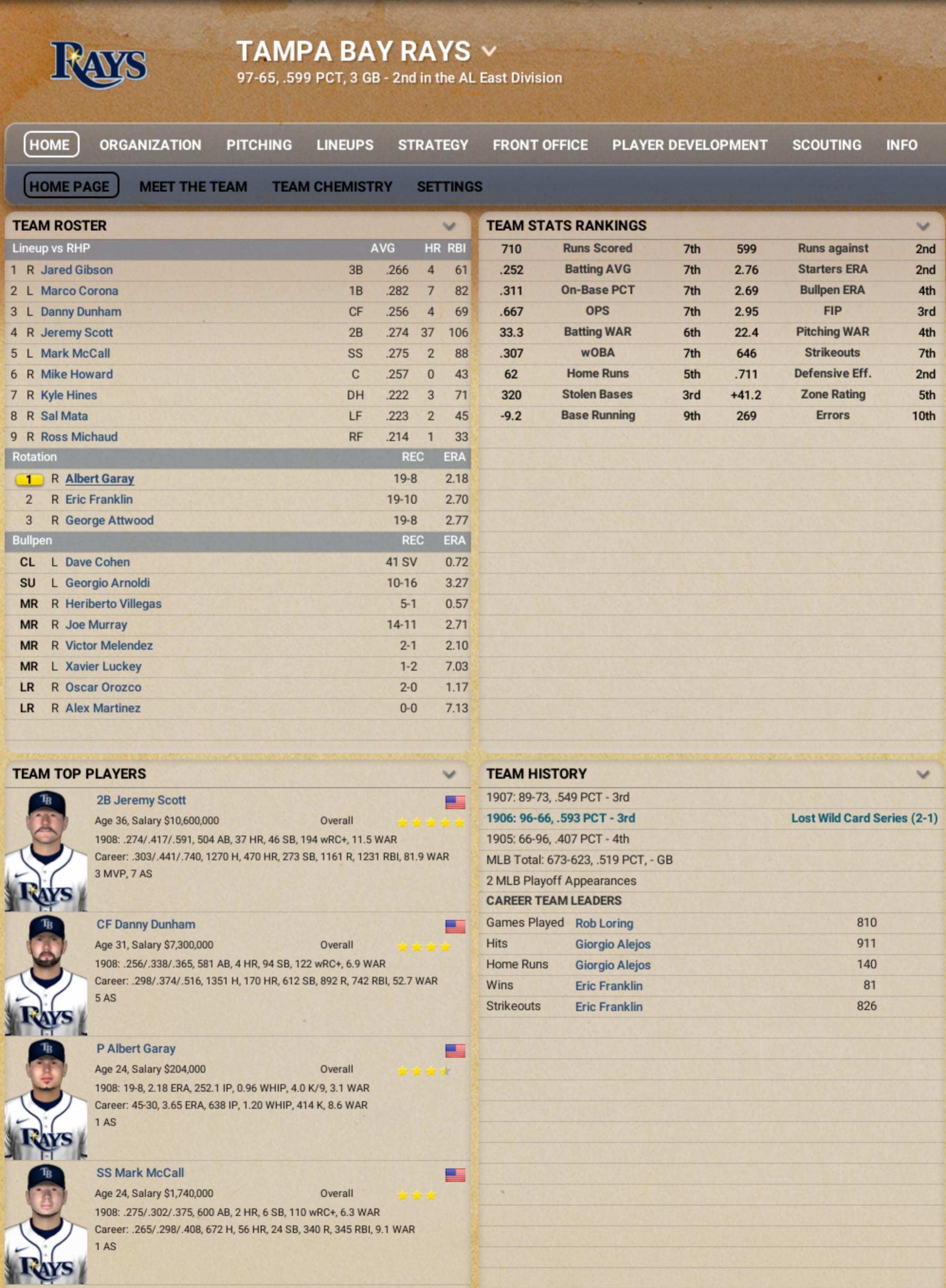 The defending World Series champion Baltimore Orioles lost Jeremy Scott and dropped to last place in the AL East, so we will have a new World Champion this season. The top two seeds in the AL will be the Yankees and Athletics. The White Sox topped the AL Central at 86-76 to capture their 2nd straight division title, but they appear to be the weakest team in the playoff field. Last year's runner up Arizona had a spectacular season at 106-56, capturing the 2nd best record in the NL but only good enough for the first wild card spot, as the Padres were even better at 109-53. The other first round bye to the NLDS will go to the St. Louis Cardinals. Philadelphia beat Atlanta in a one-game playoff to grab the #3 seed in the NL. Last edited by jg2977; 12-18-2024 at 11:18 PM. |