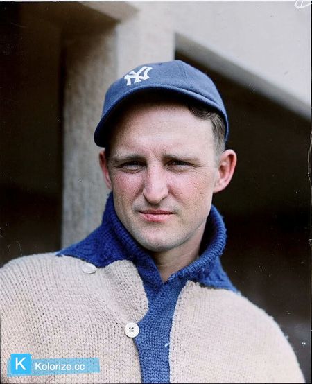William Franklin "Birdie" Cree colorized with the New York Yankees. Image was shared by tnfoto, upgraded by DeepNostalgia.ai, and colorized by Palette.fm