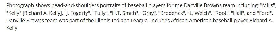 Wikipedia credits the source of the image as the 1889 Danville Browns, see post 28692 by cinemaodyssey. Extracted from a Library of Congress composite, of which a colorized version has been authored, unfortunately I am unable to credit the colorizer. The team was managed by Harry Smith. Harry Smith, debut 1877, is a missing player and was active playing for Louisville in the Majors in 1889. The middle initial of this Harry Smith does not match that believed to belong to the missing player. J. Fogerty appears to resemble prominent Major Leaguer Jim Fogarty. Baseball Reference lists him as Jack Fogarty, they were both born in San Francisco but 5 years apart identicating a potential family connection. Cinemaodyssey also identified the player listed as Root as Fred Roat.