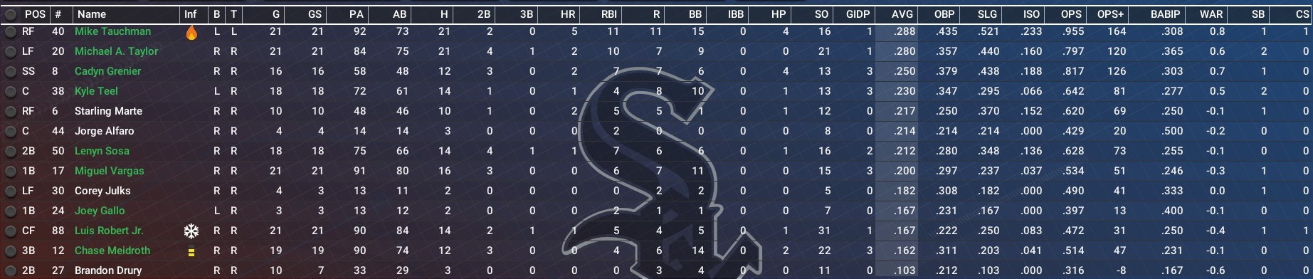 “Oh No! We Suck Again!” After their miserable season last year, and the trade that sent Crochet to Boston, it’s hard to see the White Sox as anything but a rock bottom franchise. So I’m setting out to see how difficult is is to revive the franchise over time. I’m not going to be using “Trading Hard Mode” but will have trade difficulty set to hard, with a preference for prospects over veterans. Ratings are set for 1-100, not showing ratings over 100, and I have scouting accuracy set to high, but will be using the full scouting and coaching system. All league evolution settings are “off” except for “more or less offense” and “more or less pitching.” I am starting this dynasty report using Beta v.34 (i.e. the first public beta), and as has always been my preference, I’ll be playing things out day by day and managing the games myself. - - - - - March 14, 2025: White Sox owner Jerry Reinsdorf has named 43-year-old David Harrison as the team’s new GM and on-field manager effective immediately, shaking up the franchise’s front office leadership just two weeks ahead of the team’s home opener against Houston on the 27th. With Garret Crochet gone to Boston, there isn’t a great deal left on the shelf for fans to be particularly excited about ... 25-year-old Michael Vargas has a ton of raw potential but has yet to show it at the major league level, and Luis Robert Jr. has proven to be locally popular but so far has been primarily valuable for his defense over his scoring output which was minimal. The team’s pitching is an absolute dumpster fire, and nobody in their right mind expects the team to be anything close to replacement level for most of this season. So Harrison’s work is more than cut out for him, and one has to wonder what makes the job worth taking for him at all. We’ll see you on opening day, once you find the right size bag for your head.