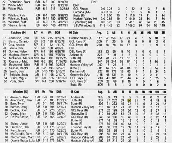 1996 T. B. Devil Rays Mini camp.