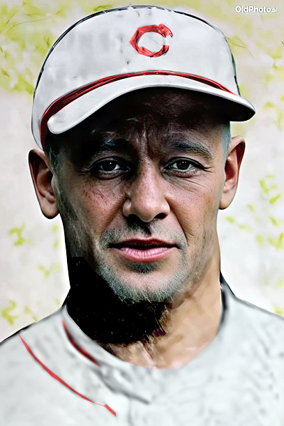 Joseph Chester "Boob" Fowler colorized with the Cincinnati Reds. Upscaled once by deep nostalgia.ai, twice using Pica.ai, colorized with kolorize.cc and heavily tweaked using GIMP.