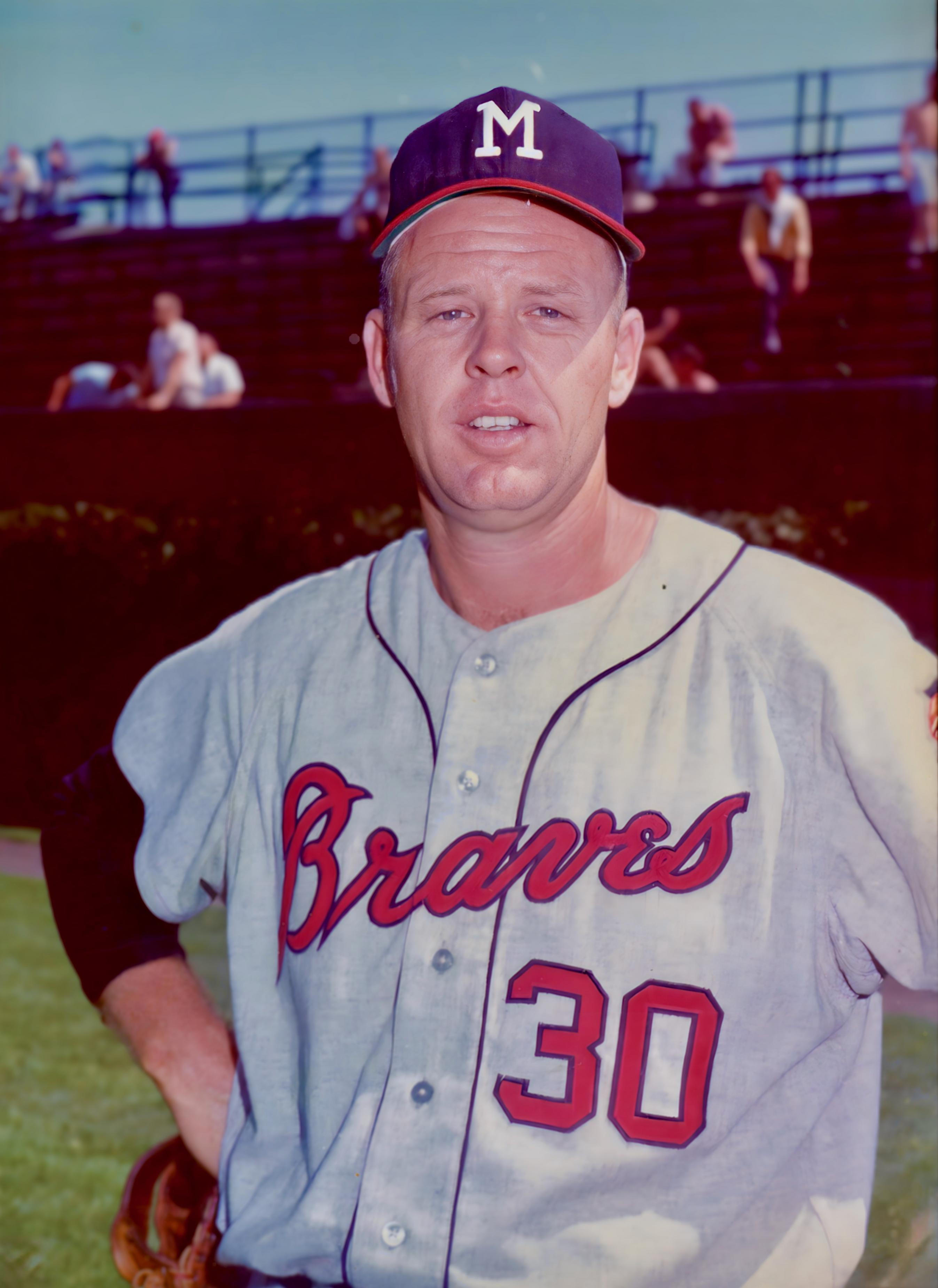 He also didn't get him with the Yankees during a two-month stay there in 1969. Interestingly, Topps didn't get him either. Online, there's what appears to be a J.D. McCarthy shot of him taken at Detroit. It's been digitally reproduced and a lot of the lines are wavy; I've never seen a better version. Brace also didn't get him with the Expos, with whom he opened 1970. They released him on April 28. There IS a Johnson Expos shot, black and white, thumbnail sized, in an anniversary poster from a Montreal scorecard - and there's a crease right in the middle. I've never seen the original. Anyway here he is at Wrigley as both kinds of Brave, and as Cub: Last edited by Merkle923; 04-29-2025 at 01:06 AM. |