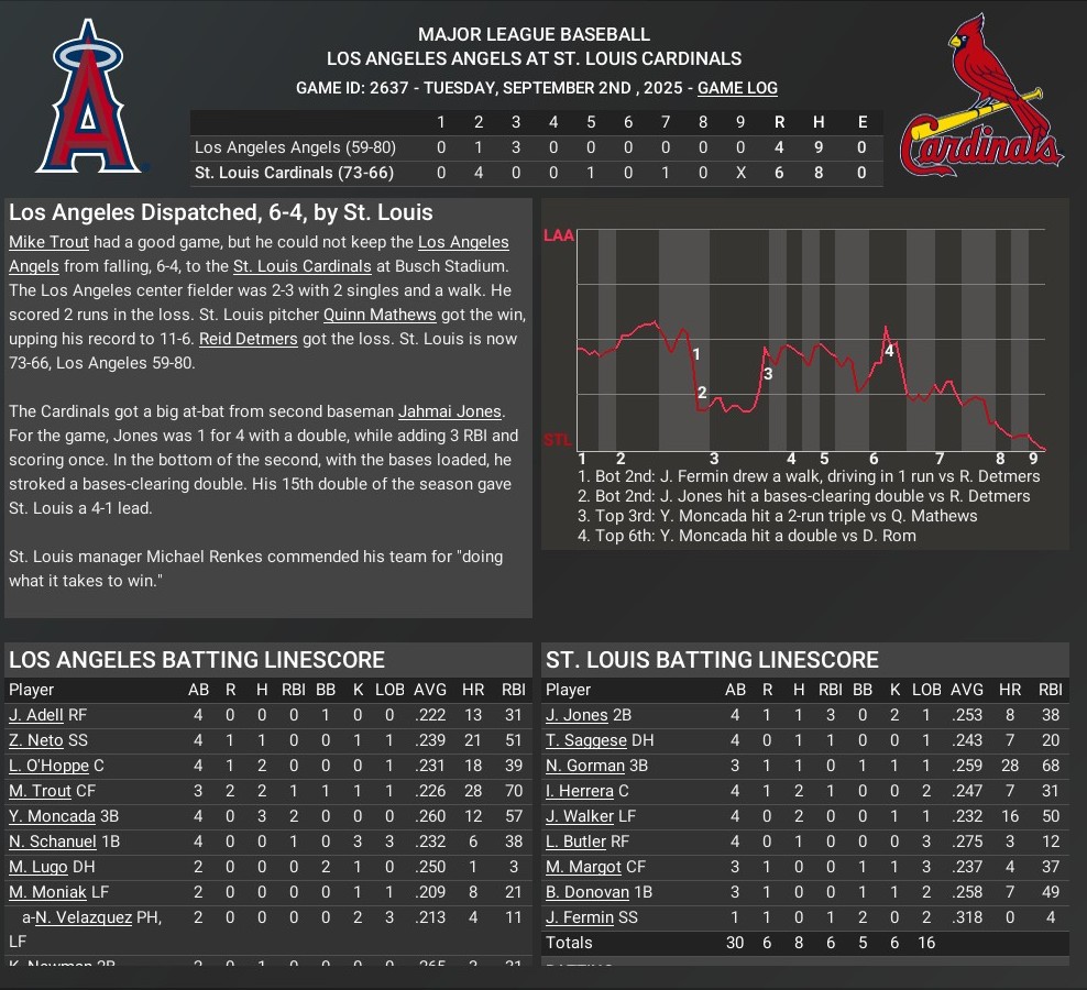 Cards news: Sept. 2 -- St. Louis Cardinals 6, Los Angeles Angels 4