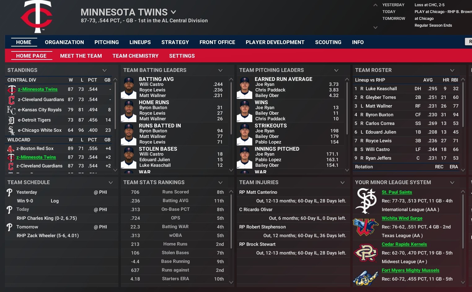 With a 5-2 win over the Philadelphia Phillies, the Minnesota Twins clinched the championship of the American League Central Division.
