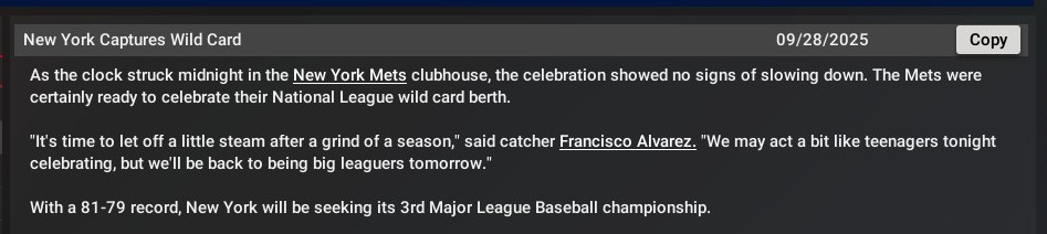 Record: 83-79, 3rd, 16 GB Chicago Cubs; wild-card berth clinched
