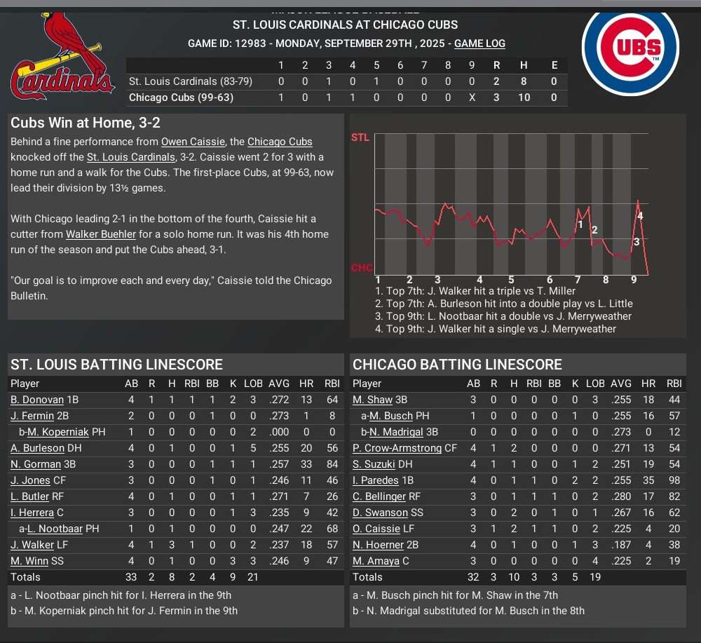 Cards news: Sept. 29 -- Chicago Cubs 3, St. Louis Cardinals 2
