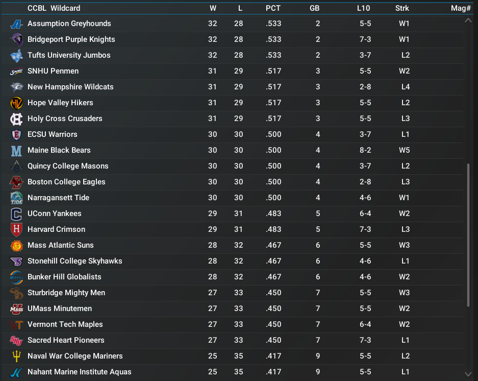BNN Report News from the CBO, Minors, CCBL, CYL, and CBA by Nat Wright-Kawolski 11 May 2315 CCBL Season Ends; Providence, CWU Top Seeds The 2315 Commonwealth Collegiate Baseball League season has ended. Most clubs and most players are headed home for the year, but a few good teams will head to the playoffs, which are slated to start soon. They will get a chance to be the league's champion. All they have to do is win the College Series -- a not-so-easy task. To win it takes a combination of good pitching, good defense and timely hitting -- and occasionally some lucky bounces of the ball. Last season's champions, the Commonwealth University Terriers are the winners of the Boston Collegiate Athletic Conference and the #2 overall seed behind #1 Providence College, winners of the Southern Commonwealth Conference. Last season's runners-up, the Boston College Eagles, finished 30-30, tied for 9th in the BCAC and out of the playoffs. Cape Cod won the MassCon tiebreaker over Nuka University thanks to a 2-0 season record over the Mixologists. Acadia College won the NoComm and Mass Maritime took the Atlantic Sound Conference. The regular season has ended and anxiety is starting to rise around the clubhouses still harboring championship aspirations. The playoffs begin today, the final sprint to the finish line and the time when great players earn their fame, when average players get a shot at immortality, and when rookies look to make their name. Some dread it and some relish it, but everyone who dreams of playing in Commonwealth Collegiate Baseball League wants to have a once-in-a-lifetime shot at championship glory. The 2315 Sweet 16 kicks off today with these exciting matchups: #16 Brown Bears vs #1 Providence College Friars #9 Yale Bulldogs vs #8 Greenfield College Greenies #12 Endicott College Gulls vs #5 Acadia College Minks #13 U Mass-Lowell River Hawks vs #4 Cape Cod University Sharks #14 CIT Engineers vs #3 Mass Maritime Buccaneers #11 Mass Bay University Beacons vs #6 Nuka University Mixologists #10 Winthrop College Guardians vs #7 Curry College Colonels #15 Northeastern Huskies vs #2 Commonwealth University Terriers. CCBL Statistics CF Derek Cureall of WInchester College was the CCBL leader in WAR with 5.7. Sacred Heart's Niven O'Donnell won the HR (26) and TB (188) titles, among other statistical categories. On the mound, Assumption's SP Casan Evans was probably the top pitcher, leading the CCBL in ERA (1.95) and tied for CG (5) and shutouts (3). He also finished second in WAR (5.4) behind SP Ori Danoyan (5.7) of Greenfield College after a 9-4 season for the Greyhounds.