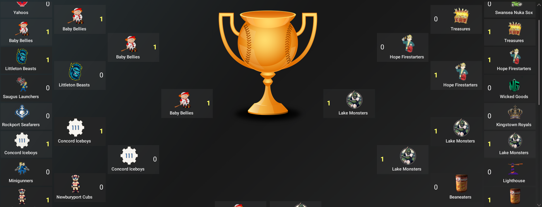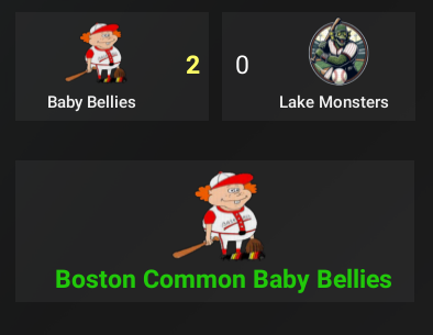 BNN Report News from the CBO, Minors, CCBL, CYL, and CBA by Nat Wright-Kawolski 22 May 2315 #1 Boston Common Sweeps #3 Old Lyme, Claims Youth Series Title The Boston Common Baby Bellies rolled over the Old Lyme Lake Monsters 9-7 at The Common Youth Field to easily win the 2315 Youth Series crown. Boston Common won in a walk and swept the series from the Lake Monsters 2-0. It was their 2nd championship title. Winning manager Big Train Tabletopper praised his own club as well as the opposition, calling the Lake Monsters "a fine team." "It wasn't as easy as it looked. We had to play good baseball to beat them," he said. "We always seemed to come up with the key hit at the right time and to make the plays on defense when we had to. That's how you win the Youth Series." The Baby Bellies took first place in the North Region Paul Revere Division and rounded out the year with a 39-11 record.