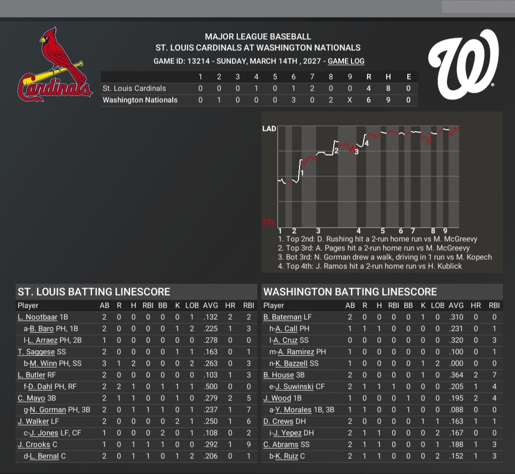 Cards news: March 14 -- Spring Training - Washington Nationals 6, St. Louis Cardinals 4, (6-16-1)