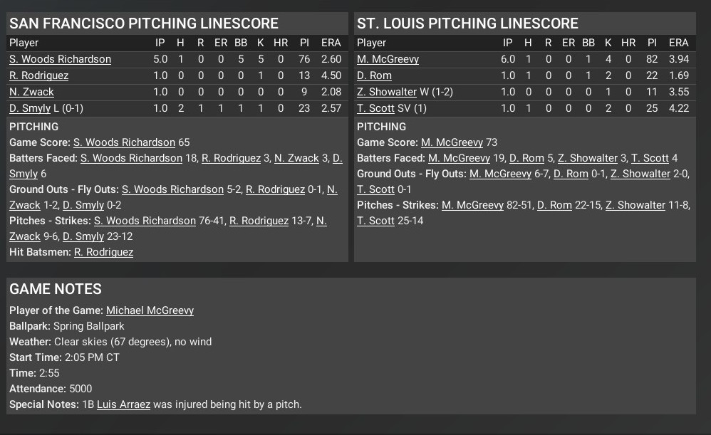 Cards news: March 19 -- Spring Training - St. Louis Cardinals 1, San Francisco Giants 0, (10-17-1)