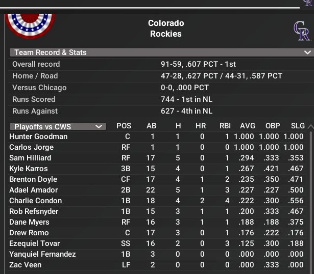 MLB news: Oct. 16 -- Postseason - Rockies playoff statistics - Colorado went 11-5