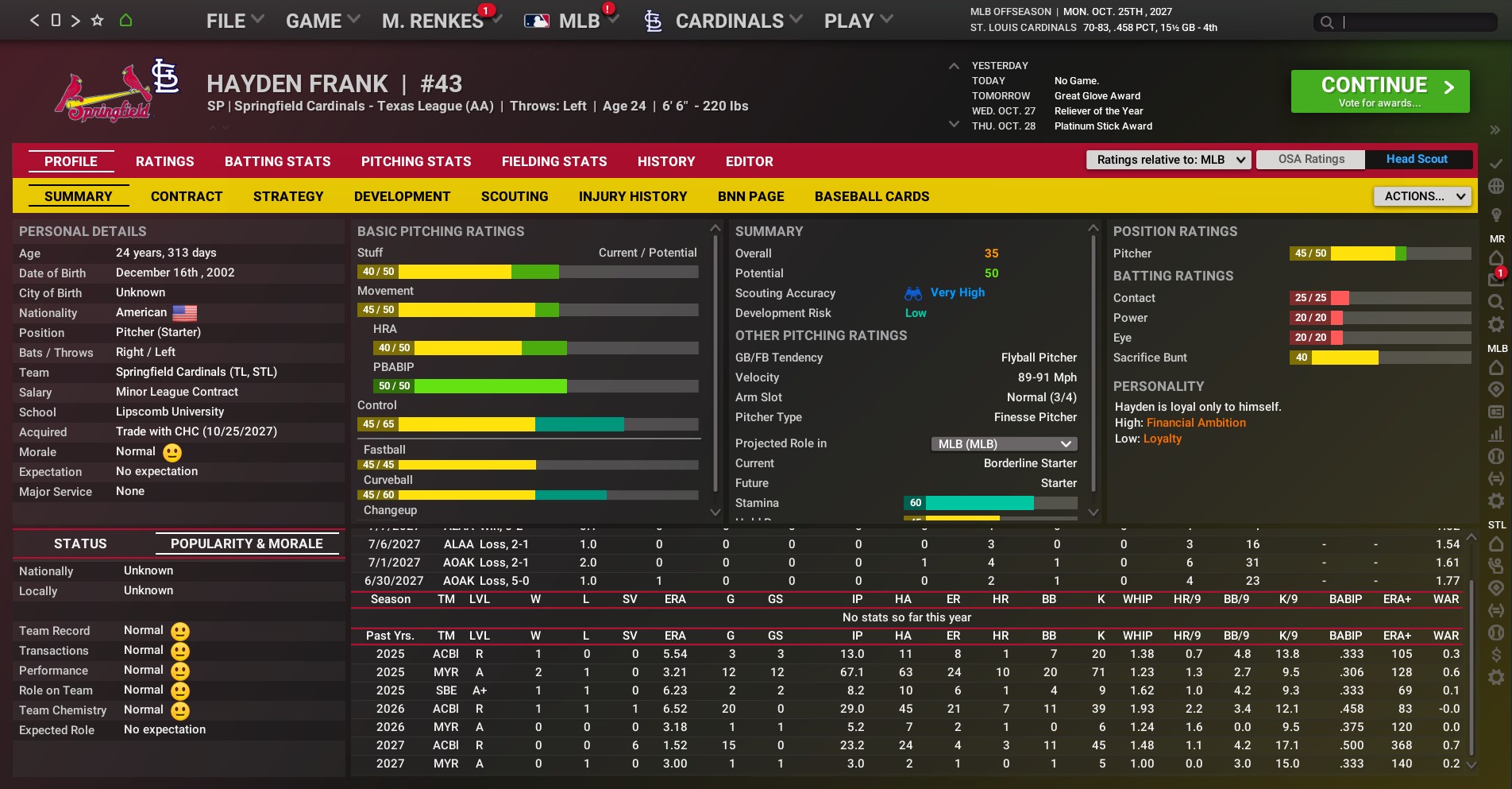 Taken in the second round of the 2021 draft, the 24-year-old Triantos made his major league debut in 2027. He played in 12 games/six starts for the Cubs during which he hit .259 with one home run and four RBIs. Over his minor-league career, Triantos has played in 716 games/684 starts during which he has hit .306 with 63 home runs and 387 RBIs. The Cubs signed Frank as a free agent in July of 2024. He spent the 2027 season in rookie ball and Class A Myrtle Beach getting into 16 games during which he went 0-1 with six saves and a 1.71 ERA. Brethowr, 24, was taken in the seventh round of the 2024 draft by the Cubs. He started the 2027 season in rookie league and would advance all the way to AA Knoxville. In 91 games, he hit .215 with 13 home runs and 37 RBIs. The 32-year-old Bazardo just completed his third season with St. Louis. The right-handed split time between AAA Memphis and the majors all three seasons. His best season came in 2026, when he got into 21 games and went 3-0 with a save and a 2.11 ERA. Bazardo's worst season with the Cardninals came in 2027, when he got into 32 games and a went 1-0 with three saves and an 8.07 ERA. The Cardinals were not planning on offering salary arbitration to Bazardo, leading to the trade. Last edited by rink23; 07-23-2025 at 04:35 AM. |