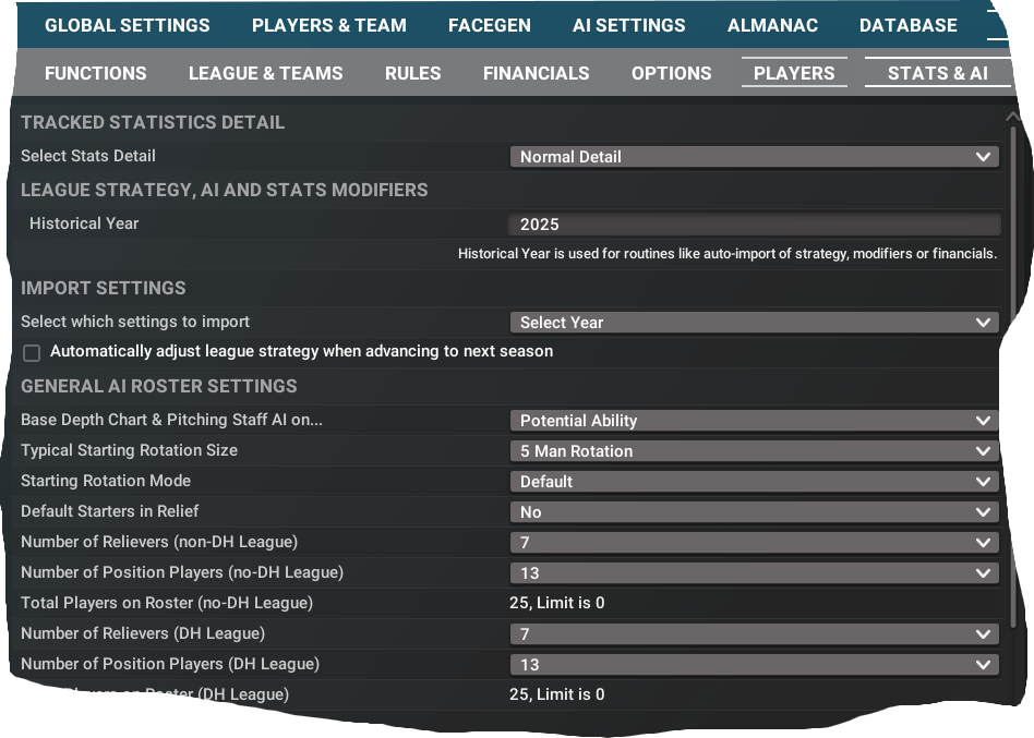 I just ran a quick 2025 test season using the standard out-of-the-box settings and noticed the following: 1. The AI (still) releases a lot of minor league players over the course of the season. Only 2-star and lower players were cut. And the AI also (still) signs a lot of minor league free agents who are no better (and often older) than those it released. I don’t have that much of a problem with the players who were released. But replacing them with older players who are no better doesn’t make sense. There’s just too much unnecessary releasing and signing of minor leaguers, in my opinion. Additional fine-tuning is needed here so that the AI only signs a minor league player if there is a) an unmet need for his services, and/or b) he is better (or younger) than players already in the system. 2. AI trading is working pretty well. Nothing to complain about here. 3. Players drafted in 2025 were not released. |