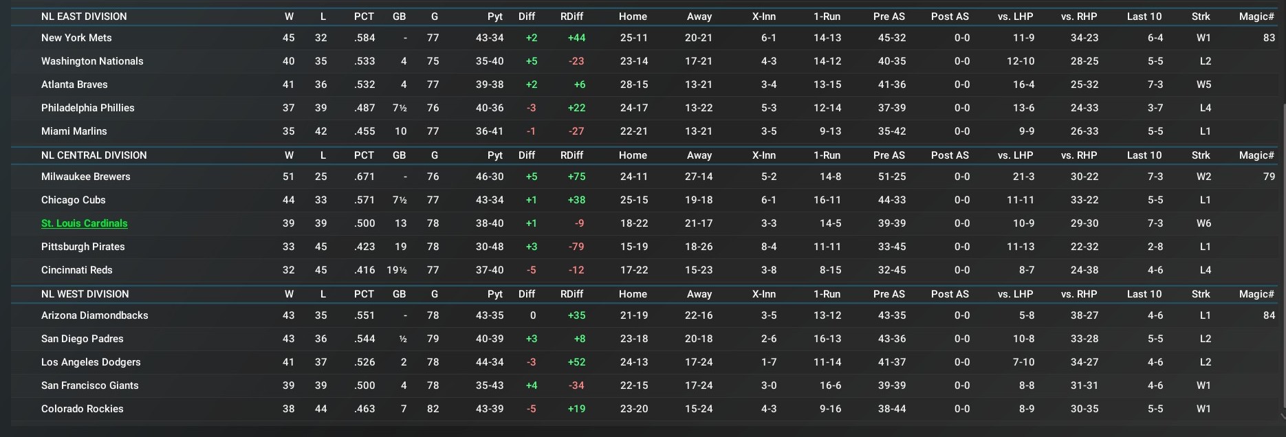 Record: 37-39, 3rd, 13 GB Milwaukee