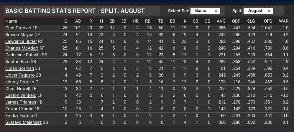 Cards news: September 1 -- Team statistics for August