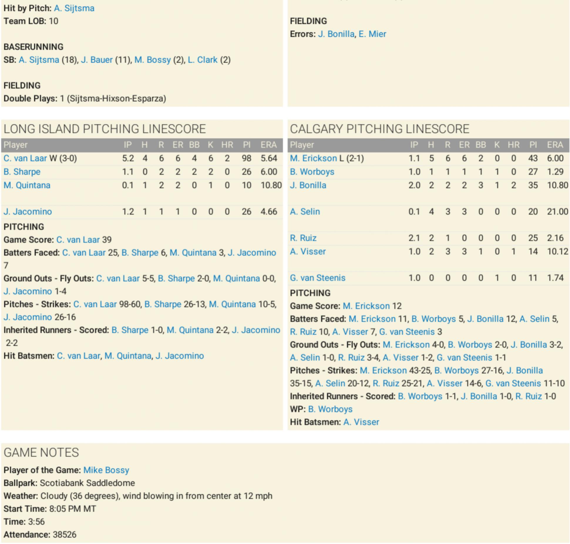 Gio: Yeah Booms, and it started out fine, right? Flyers put up four in the second inning, you’re thinking, “Hey, maybe they got somethin’ goin’.” Barry hits a homer, Gutierrez — the catcher, not the pitcher — hits a three-run bomb. They’re up 4–2. And then, ahhh… it all falls apart. Boomer: Completely fell apart. Vinny Hixson, three-run shot in the fourth, Adrie Sijtsma — and I love this kid, by the way, I love the way he plays — goes deep later, drives in three, scores three. He’s just everywhere. Gio: Yeah, and Pastor, the Islanders starter, he wasn’t even that sharp. Gives up four runs in the second inning. But the Phillies — excuse me, Flyers — couldn’t touch him after that. He ends up going seven-plus innings, keeps his team in it, and then the Islanders offense just explodes. Boomer: Explodes. Bossy with four hits, Bauer drives in two, Valenzuela has three hits, Bernabel steals a couple bases… they’re running wild. Sixteen runs on sixteen hits. It was a laugher by the fifth inning. Gio: And meanwhile, the Phillies — the Flyers, whatever — five hits total. That’s it. Nothing after the second inning. Completely dead. You can’t win playoff games like that. Boomer: And you know what this sets up now, Gio? Islanders in complete control. They go to Philly up 2–0, Wells Fargo Center’s gonna be loud, sure, but the Flyers better figure it out or this thing’s gonna be over quick. Gio: Yeah, and I just don’t see how they stop this lineup. I mean, Sijtsma, Bauer, Bossy, Valenzuela — it’s relentless. You can pitch around one guy, but the next guy’s gonna burn you. Boomer: Islanders win 16–4, total domination. Player of the game: Adrie Sijtsma. Flyers on the ropes. Gio: Flat out ugly. |