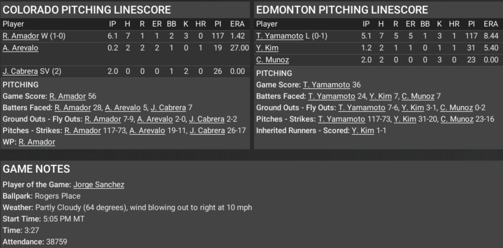 “GREAT SCOTT!! Ladies and gentlemen of the National Hockey League—wait a minute, this isn’t hockey—this is baseball in a hockey arena!! I’ve just witnessed a game of such titanic proportions, it could alter the very fabric of postseason reality as we know it!! Here at Rogers Place, on the historic date of September 23rd, 2006, the Colorado Avalanche have blasted the Edmonton Oilers right out of their own timeline with a 6 to 3 victory in Game 1 of the Conference Semifinals!!” 📈 SCORING SEQUENCE — LIKE CLOCKWORK, MARTY! “Nothing, NOTHING through the first three innings. It was as if time itself was frozen in the first act of the space-time continuum… but in the fourth inning—BAM! Sal Calixtro hits a double that sends the Avalanche into the future with a 1-0 lead! Then… oh, the fifth, sixth, and seventh innings became a temporal cascade—a chain reaction of runs! Colorado tallies SIX in total, like the DeLorean hitting 88 miles per hour!” 💥 JORGE SANCHEZ — PLAYER OF THE GAME “Now listen closely, Marty! Sanchez didn’t just play… HE DISRUPTED THE SPACE-TIME CONTINUUM of the Oilers’ pitching staff! Three hits, two home runs, one double, and ten total bases—TEN!! That kind of offensive output could power the flux capacitor for MONTHS!” ⚾ COLORADO ATTACK — 11 HITS, 6 RUNS, ZERO ERRORS MacKinnon getting on base like a well-oiled temporal conduit… Calixtro striking at the right moment… Okuhara sacrificing like a man who knows he’s altering history! Meanwhile, Sanchez—oh, Sanchez—launches missiles off Yamamoto and Kim that would leave temporal scorch marks in the right-field bleachers. 🧊 OILERS RESIST, BUT THE TIMELINE BUCKLES “W. Gretzky tries to restore order to the timeline with a towering home run in the seventh inning—Marty, I swear, it was like seeing the clock tower struck by lightning! But it’s too little, too late. The Avalanche’s pitching combination of Amador, Arevalo, and Cabrera clamps down like a chronal stabilizer.” 🧪 PITCHING NUMBERS—PRECISION ENGINEERING! “Amador—six and a third solid innings—117 pitches of pure chronal control—just one earned run. Cabrera seals the deal with two innings of shutout ball. Meanwhile, Yamamoto’s outing—oh dear—eight point four four ERA! That’ll send any pitching career spiraling into the temporal abyss!” ⏰ GAME LOG Start Time: 5:05 PM Mountain Time Duration: 3 hours, 27 minutes of space-time fireworks Attendance: 38,759 bewildered fans wondering what sport they’re even watching. Wind: Out to right field at 10 mph… almost like nature itself was helping Sanchez hit those bombs! 🔥 FINAL RESULT Colorado Avalanche 6 — Edmonton Oilers 3 Colorado leads the series 1-0. “Great Scott, Marty… if the Oilers don’t adjust their trajectory in Game 2, the Avalanche are going to rewrite this entire postseason. And trust me… YOU DON’T MESS WITH THE SPACE-TIME CONTINUUM!!” Cue dramatic lightning strike over the clock tower. ⚡️⏳ |