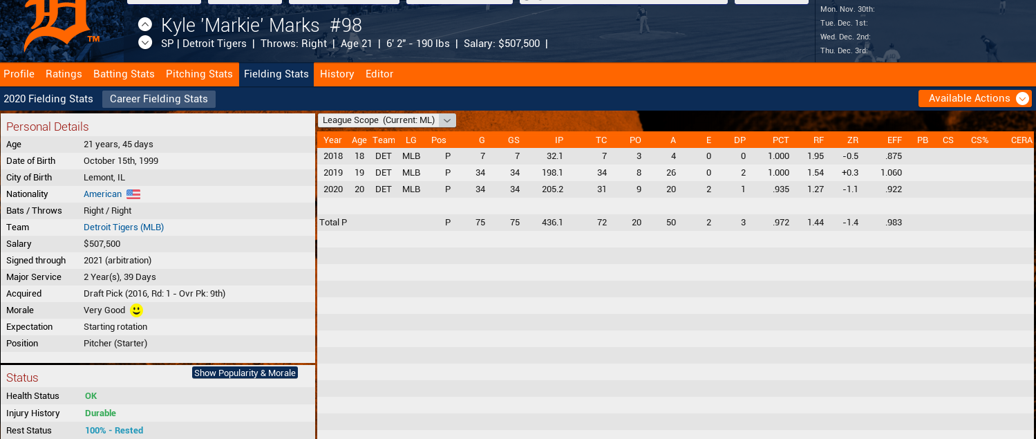 Fielding cont...and yes Staples did pitch 1.2 innings...I just noticed it.
