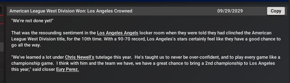 At 90-70, the Angels lead the second-place Houston Astros by four games with just two games remaining in the regular season. Los Angeles also remains in contention for the top seed in the AL playoffs, as it sits just a game behind the AL East Division-leading Baltimore Orioles for the best record in the league. The Angels last made the playoffs in 2027. Their lone World Series appearance came in 2002, when they downed the San Francisco Giants in seven games. |