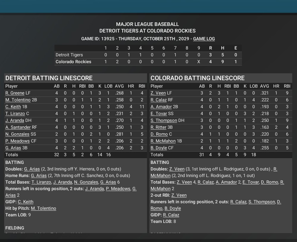 MLB news: Oct. 25 -- World Series Game 1 - Colorado Rockies 4, Detroit Tigers 3