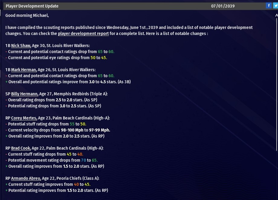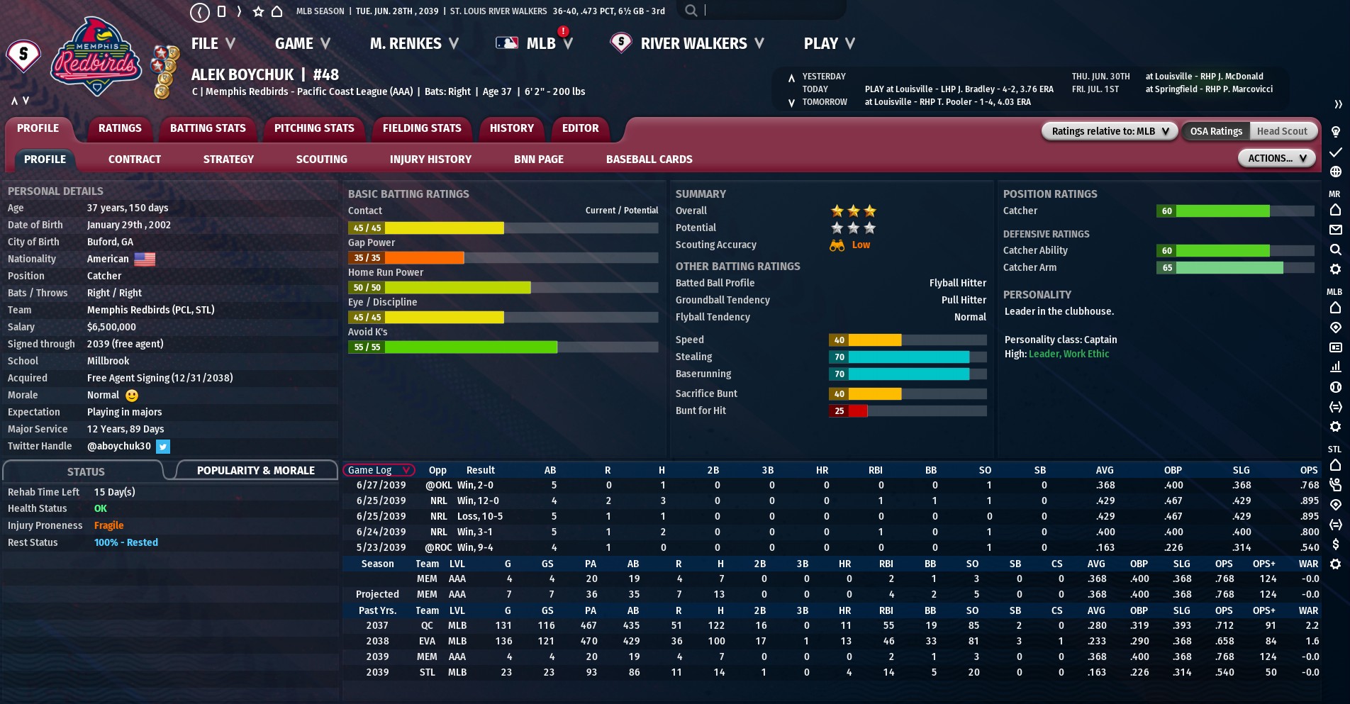 Shaw, 30, had been sent to AAA on June 24 because of his struggles at the plate. The veteran first baseman has hit .235 with 10 homers and 32 RBIs in 67 games this season for the Walkers. In his four games at Memphis, Shaw hit .500 with three RBIs. Signed in the offseason to be their catcher, Boychuk has been out since May 23 with a strained oblique. The 37-year-old has played in 23 games for St. Louis, hitting .163 with four homers and 14 RBIs. In a four-game rehab at AAA, Boychuk hit .368 with two RBIs. Wenman has been the Walkers primary backup catcher since the 2035 season. This season, Wenman has played in 43 games/39 starts while hitting .265 with 15 RBIs. The decision to send Wenman down was because of his struggles defensively, along with the solid play of Mike Vaughan who was called up when Boychuk was injured. Also an off-season free-agent signing, Sotolongo was called up during Shaw's brief time in Memphis. The 28-year-old played in five games/four starts and hit just .067. |