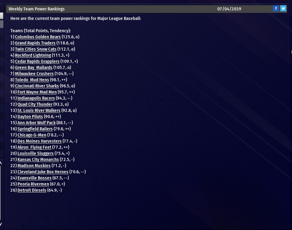 MBL news: July 4 -- Week 14 -- Awards and standings