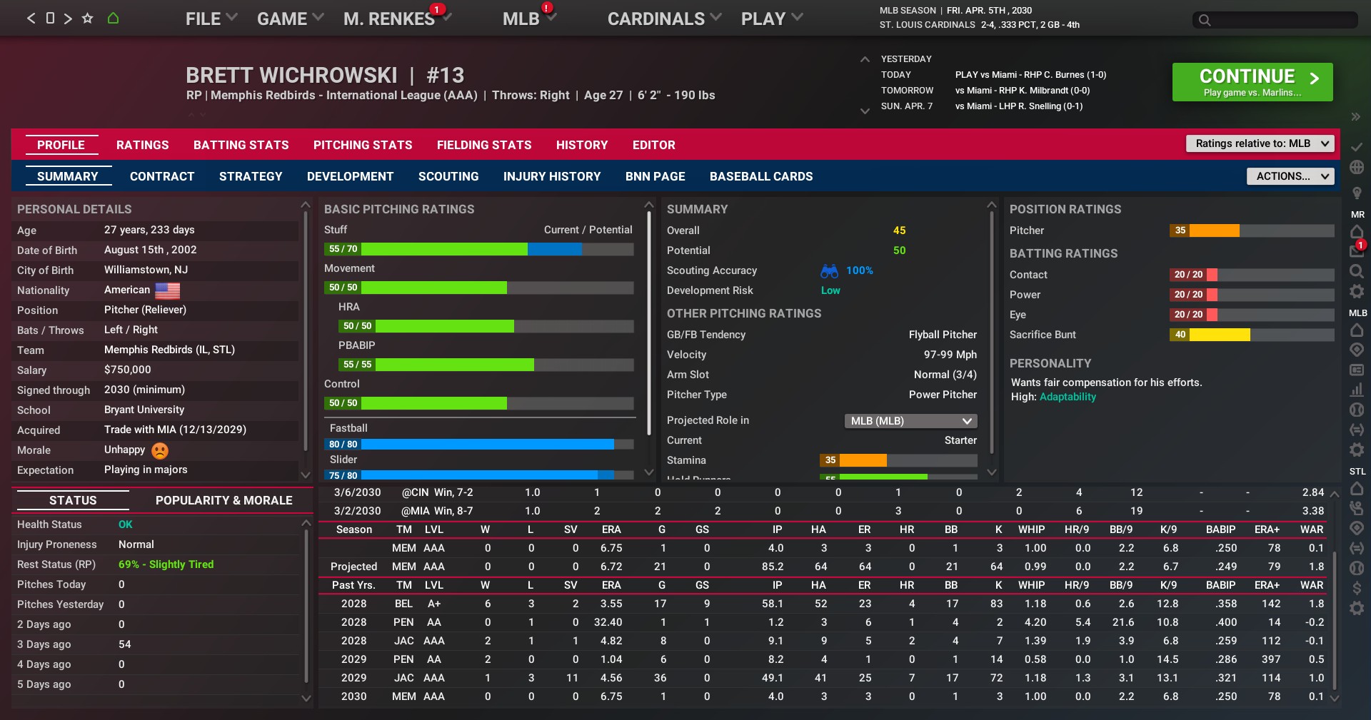 Signed to a $5.2 million deal in the off-season, Loaisiga pitched in just four games -- allowing no runs over 3.1 innings -- before suffering an injury which will keep him out until late in the season. Getting called up from AAA Memphis is 27-year-old right-hander Brett Wichrowski. Another off-season signee, he had previously been in the Maimi Marlins farm system, he had pitched in one game in Memphis this season going four innings during which he allowed three earned runs on three hits. He has never pitched in the majors. |