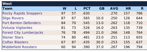 2019 Ruthlandia West Final Standings and Team Batting Statistics