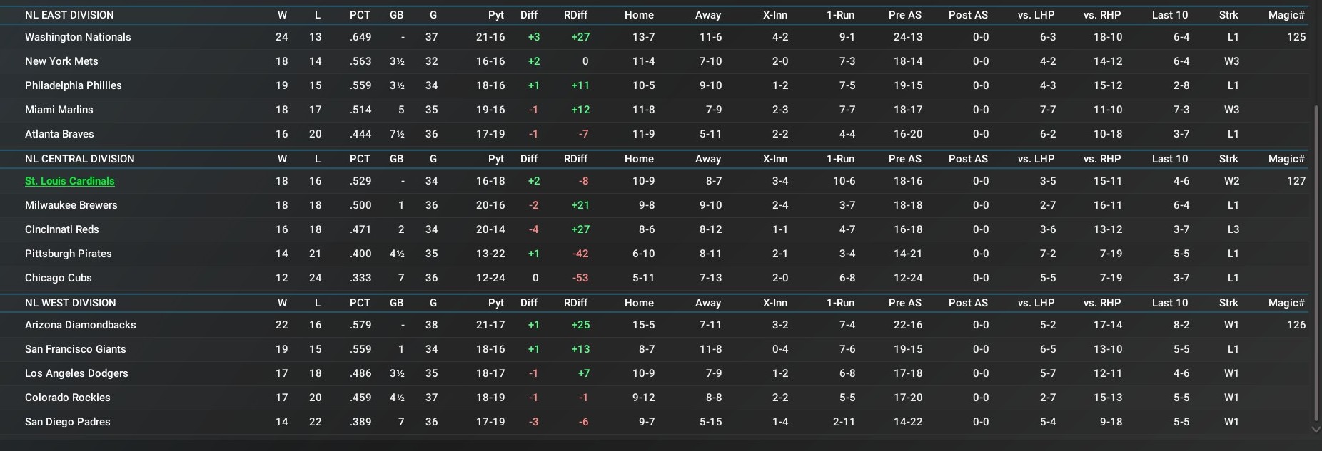 Record: 17-16, 1st, 0.5 GA Cincinnati