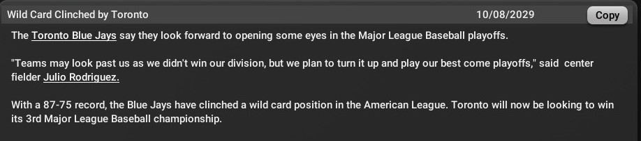 MLB news: Oct. 9 -- American League No. 5 seed Toronto Blue Jays (87-75, 2nd in AL East)