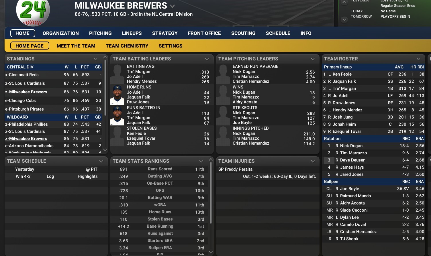 MLB news: Oct. 9 --- National League No. 6 seed Milwaukee Brewers (86-76, 3rd in NL Central)