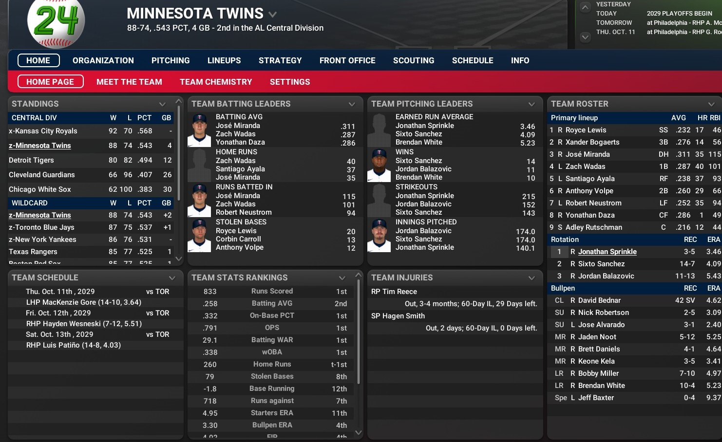 MLB news: Oct. 9 -- American League No. 4 seed Minnesota Twins (88-74, 2nd in AL Central)