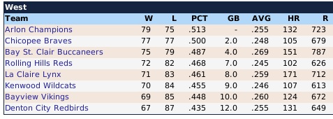 2020 Tycobbian West Final Standings and Team Batting Statistics