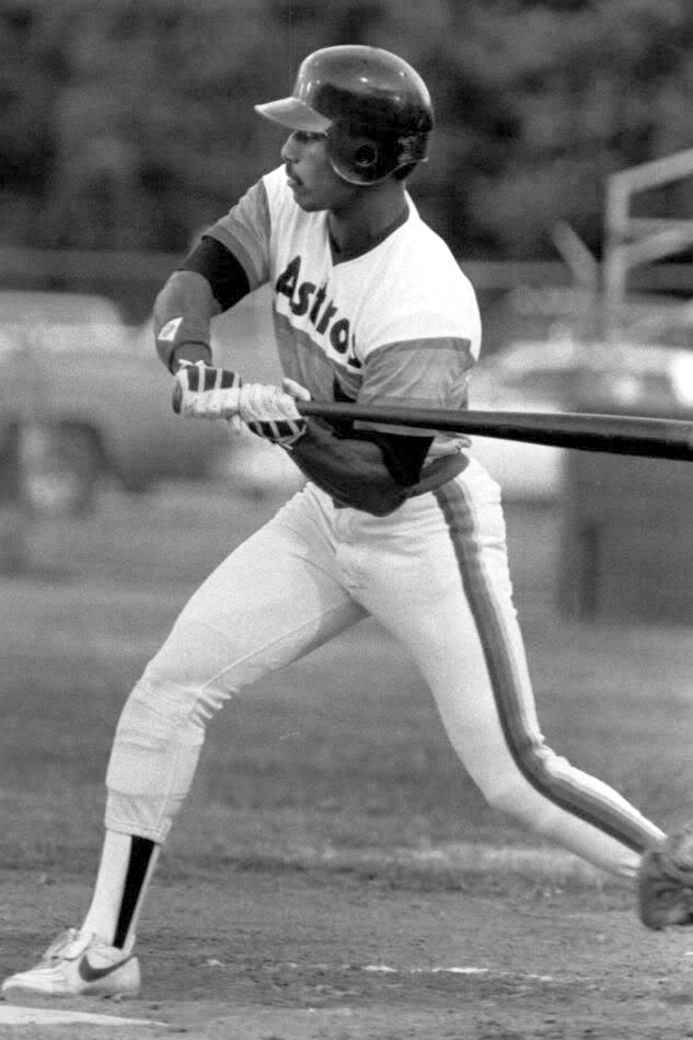Here are some images I found of Eric Bullock with the Astros. He has been a white whale, I think. These are both Argenta-Images press photos, posted to ebay by thisgirlsnegatives. The first picture is dated 1984, and is a spring training shot. The date may be right, because Bullock was on the Astros 1983-84 winter roster even though he didn't make his MLB debut until 1985. The second picture is dated 1987. Bullock did not play for the Astros that year (he got 1 AB in '86), so perhaps this too is a spring photo.