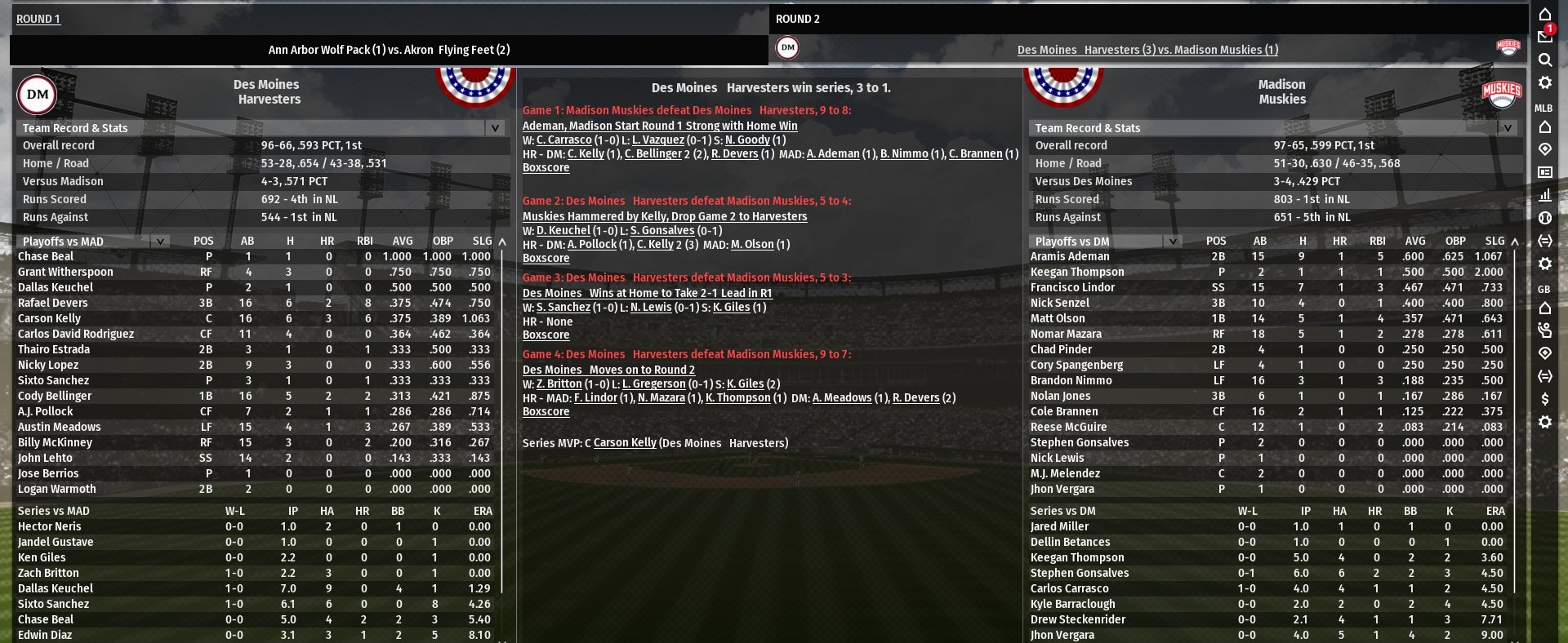 Madison (105-57) owned MBL's best record in the regular season and it continued through the playoffs, as it won seven of eight games. The World Series MVP went to outfielder Nomar Mazara, who batted .476 with two homers, seven RBIs and five runs scored. Last edited by rink23; 05-08-2019 at 05:02 AM. |